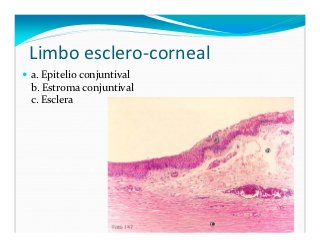 - 10. Limbo esclero-corneal a. Epitelio conjuntival b. Estroma conjuntival c. Esclera