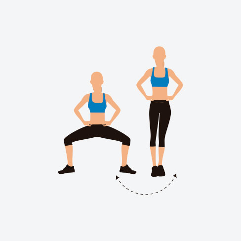 Este movimiento funcional consiste en “sentarse y levantarse” sin apoyarse. Se inicia desde la vertical con los pies alineados con la cadera y perfectamente perpendiculares al tronco. Se ha de realizar sin despegar los talones del suelo. Es un ejercicio fundamental para potenciar el tren inferior.