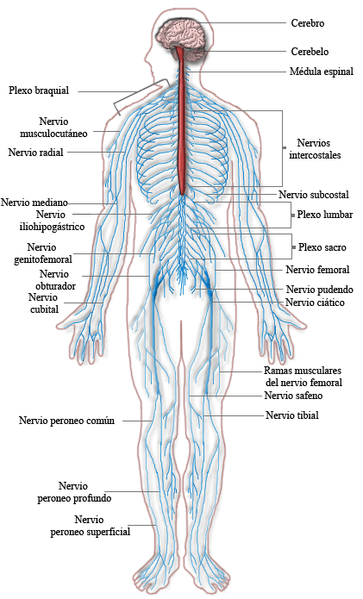 Por otra parte, es la parte del sistema nervioso periférico asociada con el control voluntario de los movimientos corporales. Consiste en nervios aferentes o nervios sensoriales, y nervios eferentes o nervios motores.