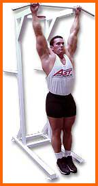 Alcanza la barra de dominadas y deja que tu cuerpo quede colgado.